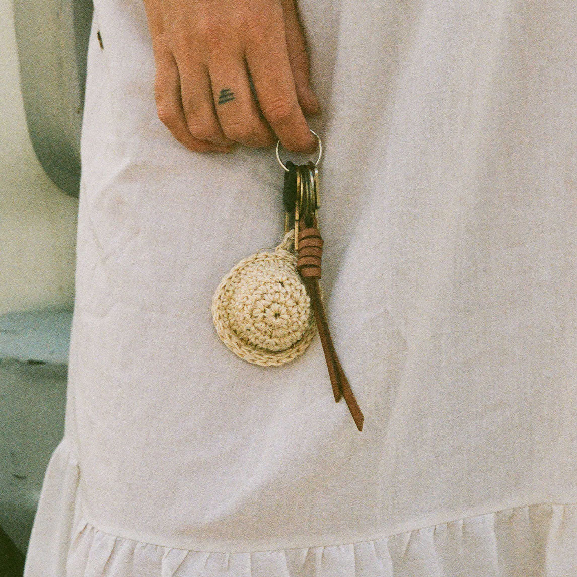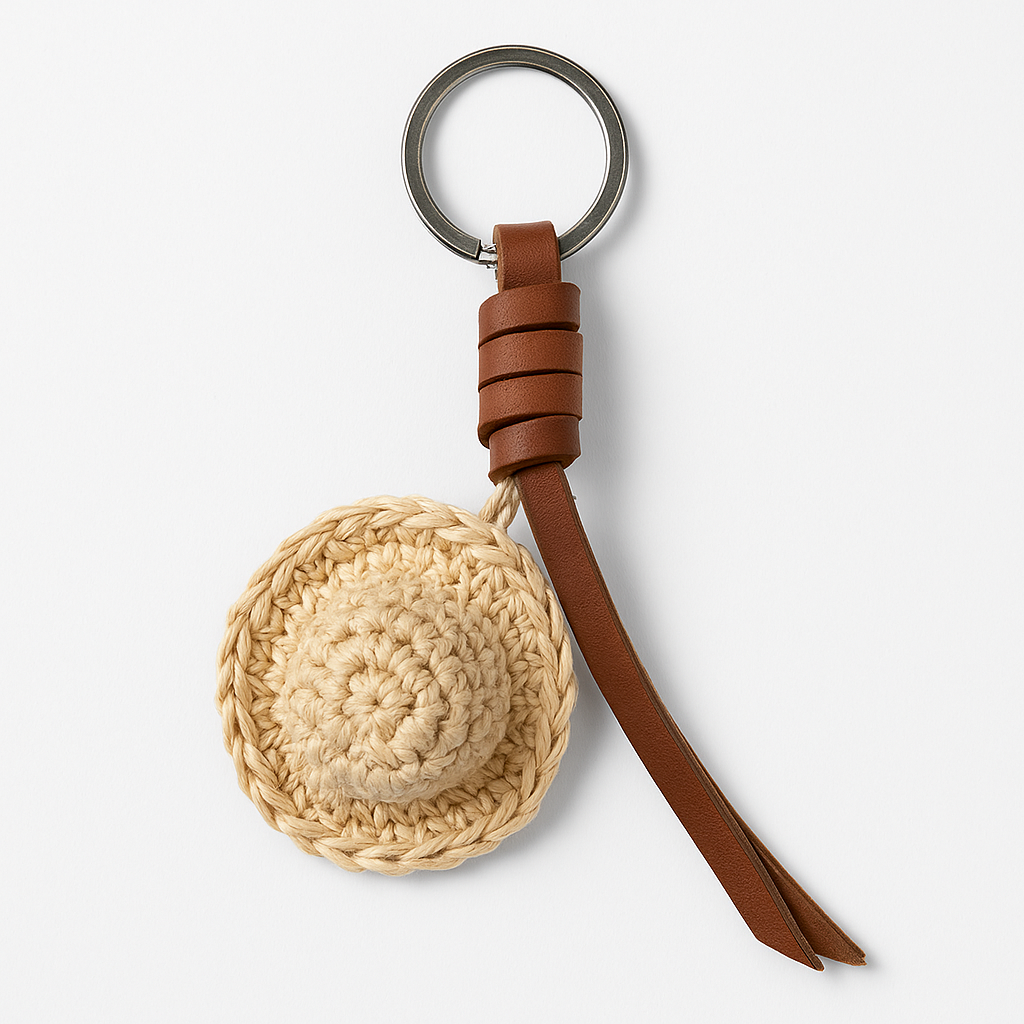 Mini-Woven Hat & Leather Keychain
