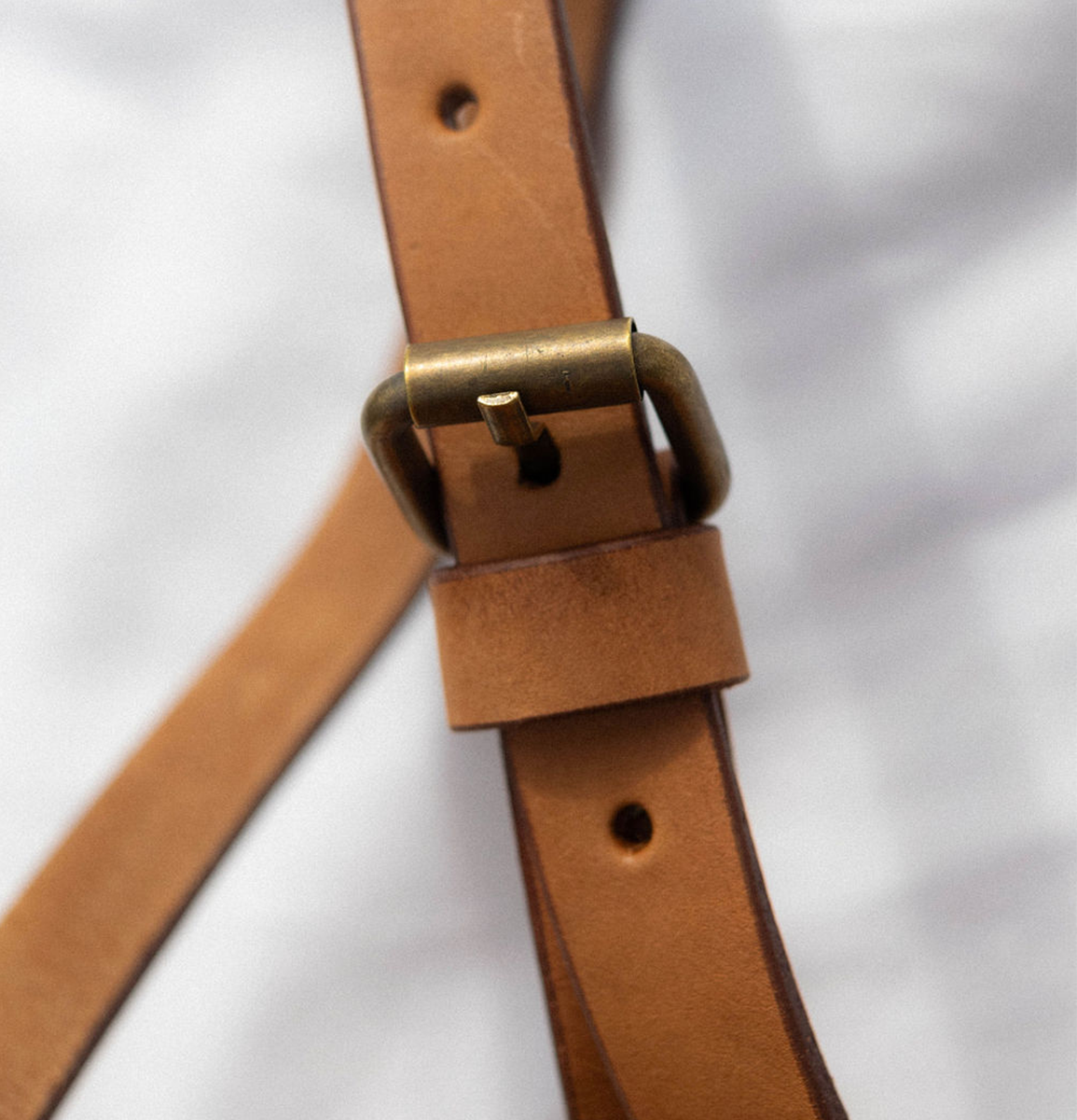 We use only the finest leather finishings and straps, applying them one by one. We work with a family-run studio that works with high quality vegetable-tanned leather so each strap will naturally wear and soften the more you use it.