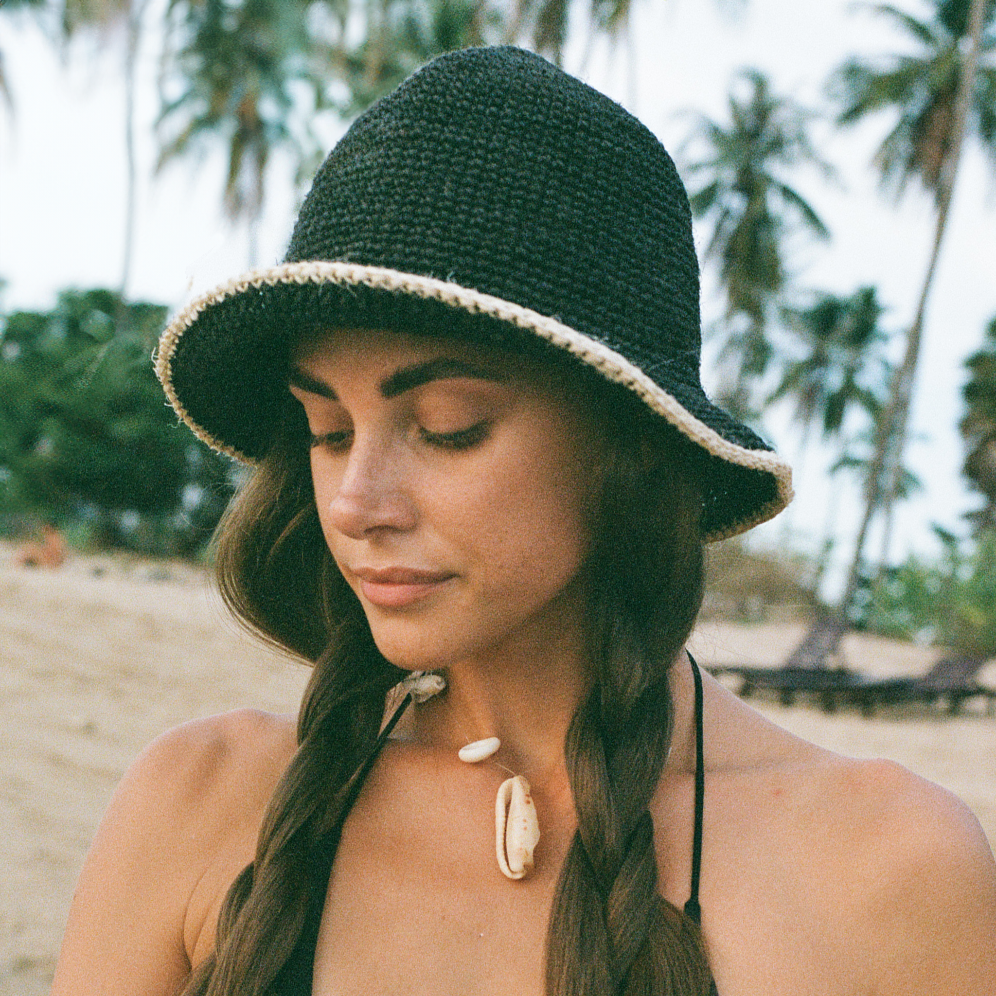 Our artisan partners use Cabuya, a native agave fiber, to make and crochet our Bucket Hats. To access the fiber, our artisan partners harvest the Penca plant and break down its leaves to access the fiber that lives inside to be processed into workable thread.