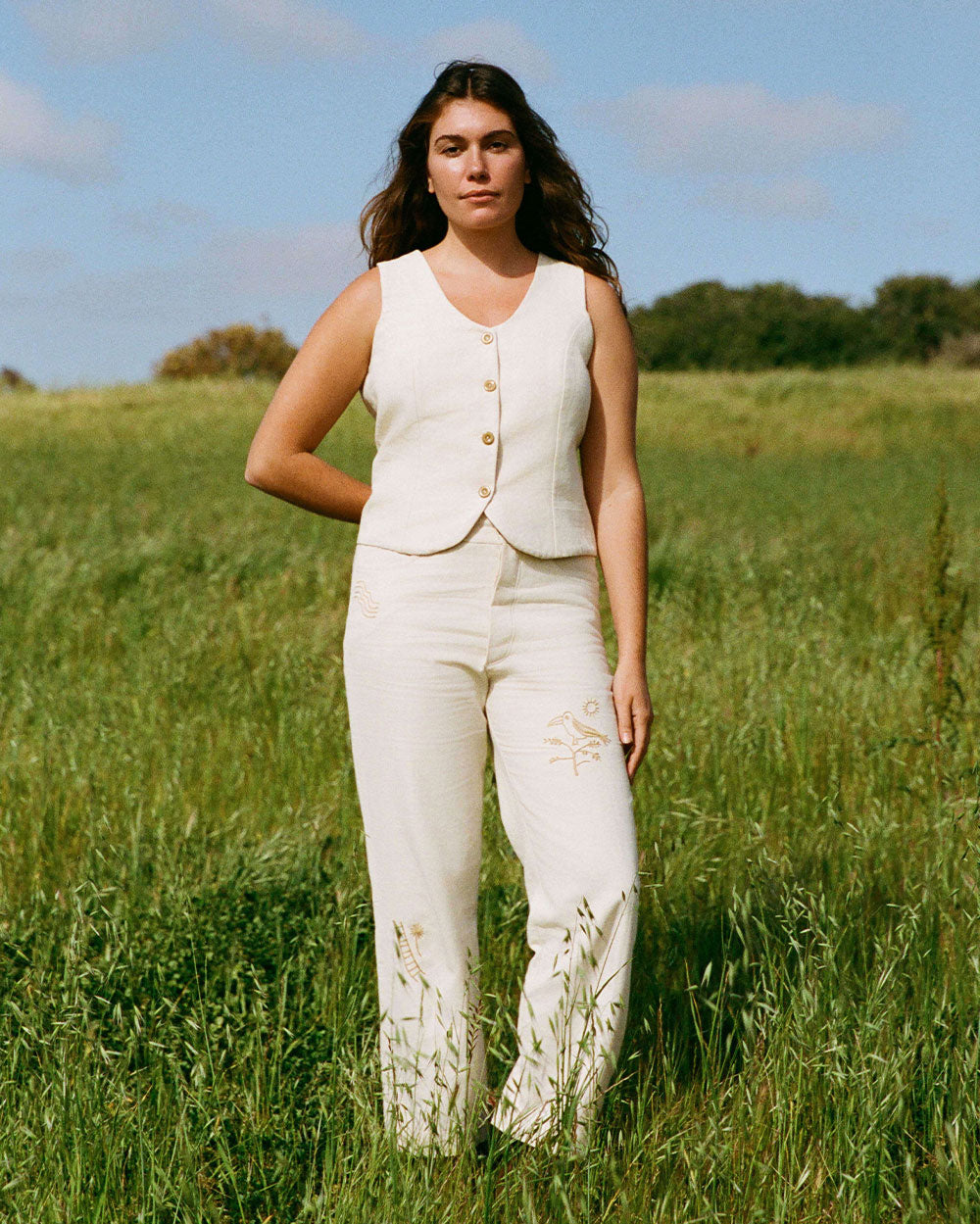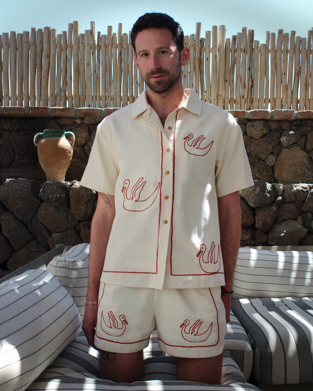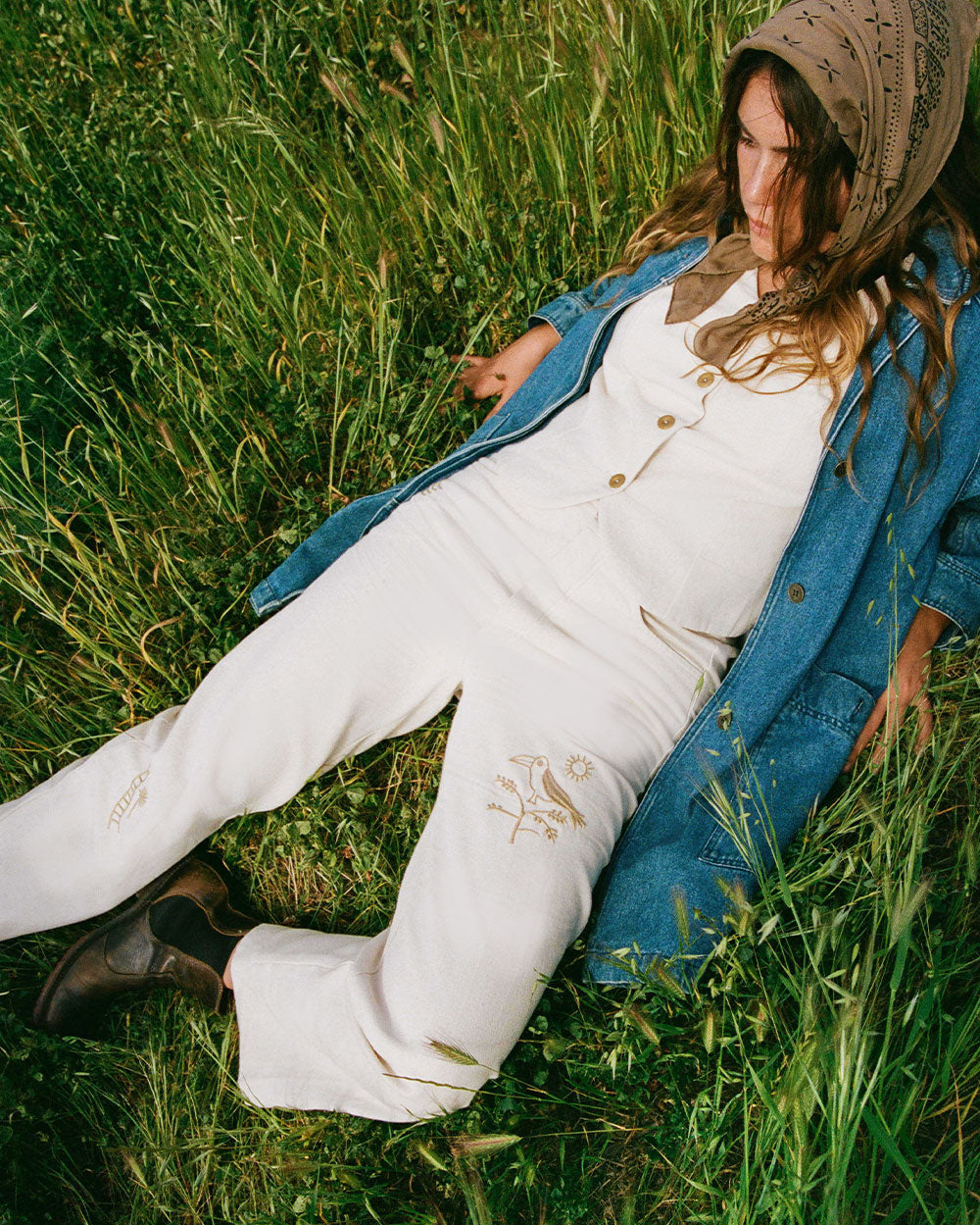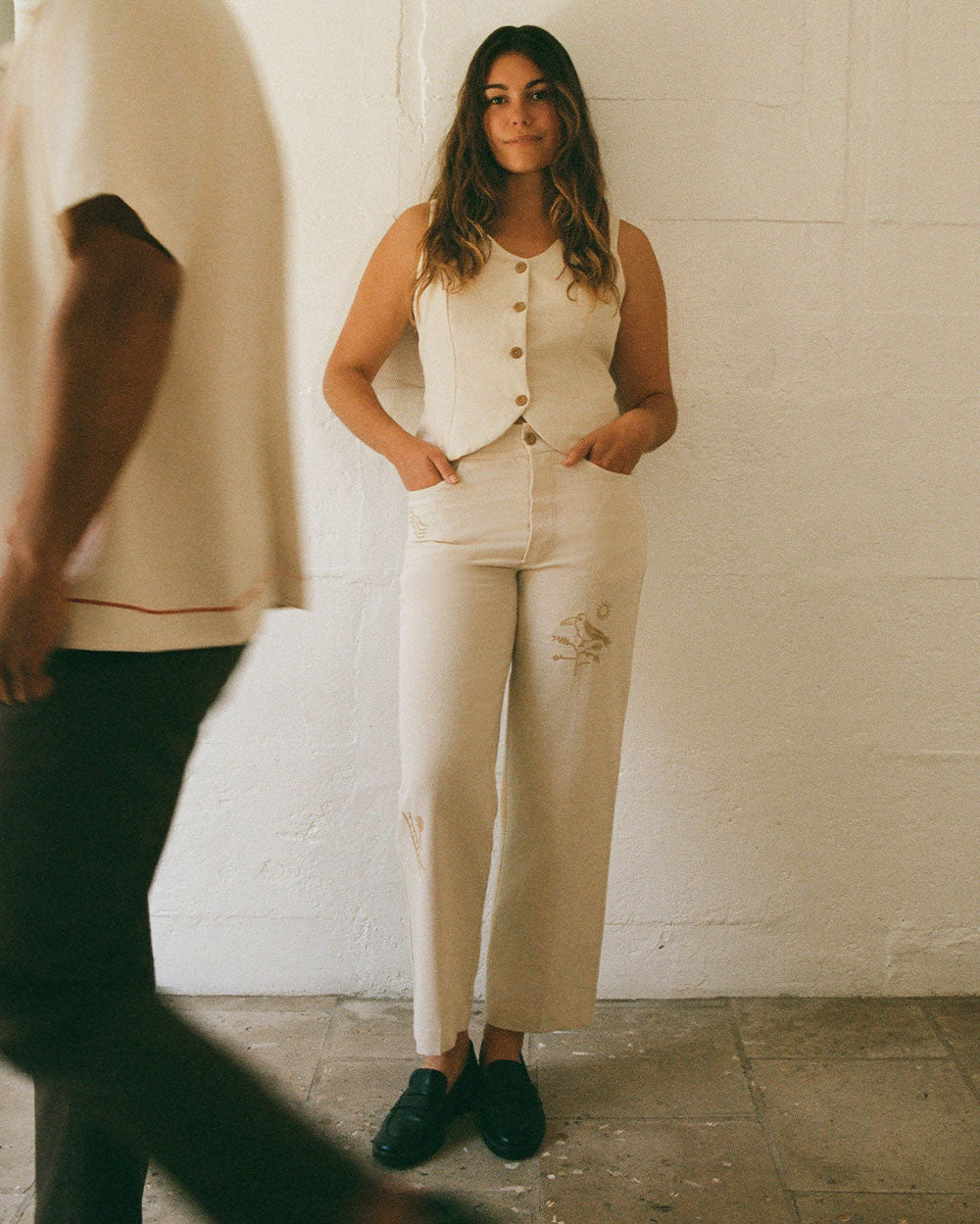 We’ve transformed these original works into hand-stitched embroidery—carrying their vision from canvas to cloth, now woven into every piece in this one-of-a-kind cotton line of matching sets and versatile, handmade wears.