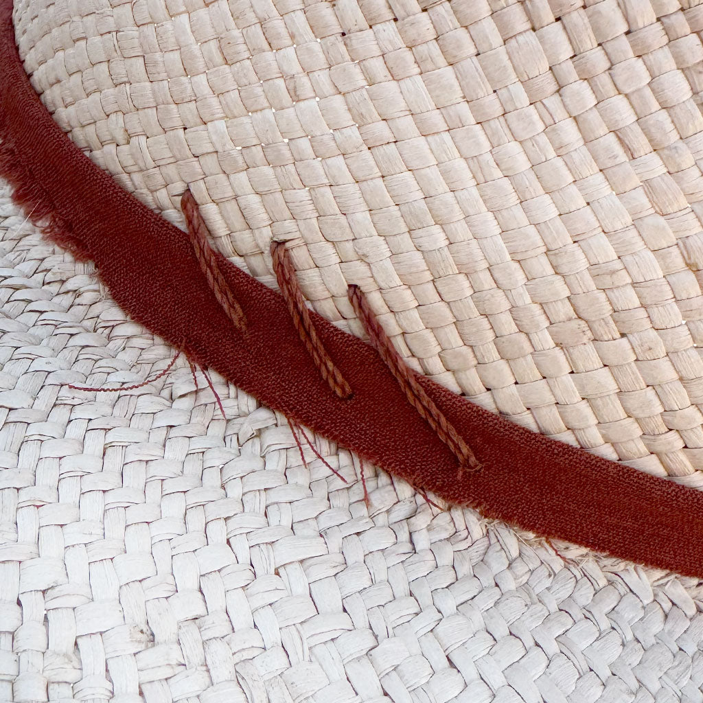We partner with a women's weaving co-op in Cuenca, Ecuador to weave each Minga hat by hand one by one. The straw blank then goes to our our artisan partners to press and shape. Once it’s formed, it’s carefully trimmed, ironed, cleaned and sewn.