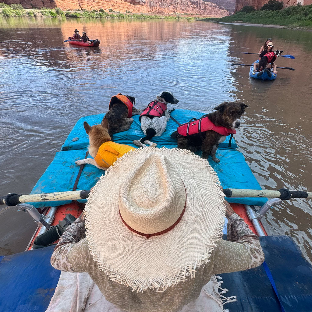The perfect hat for a beach day, river trip or to add flare to your next summer outing. We worked with Brianna Madia to design this custom frayed straw hat with a leather neck tie.