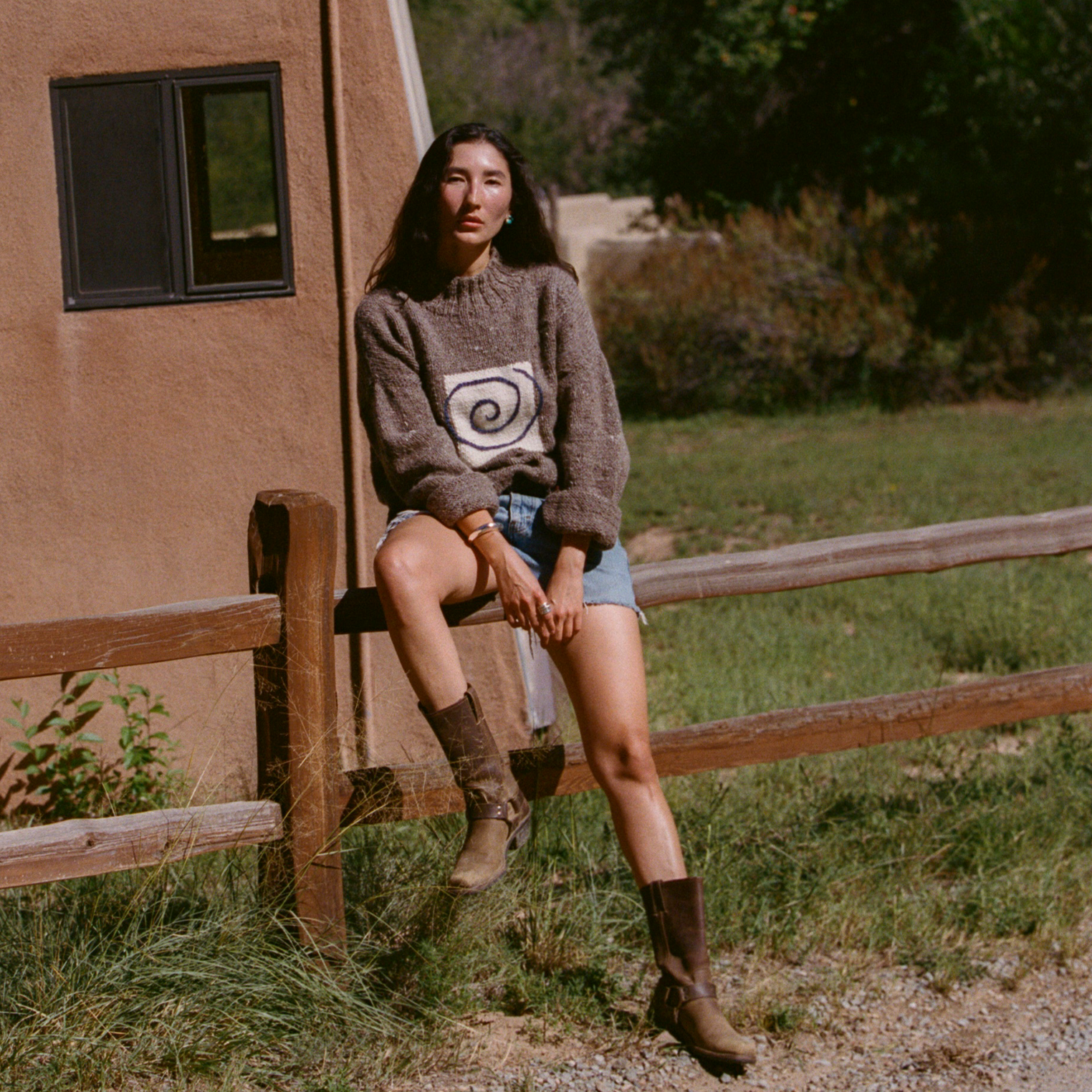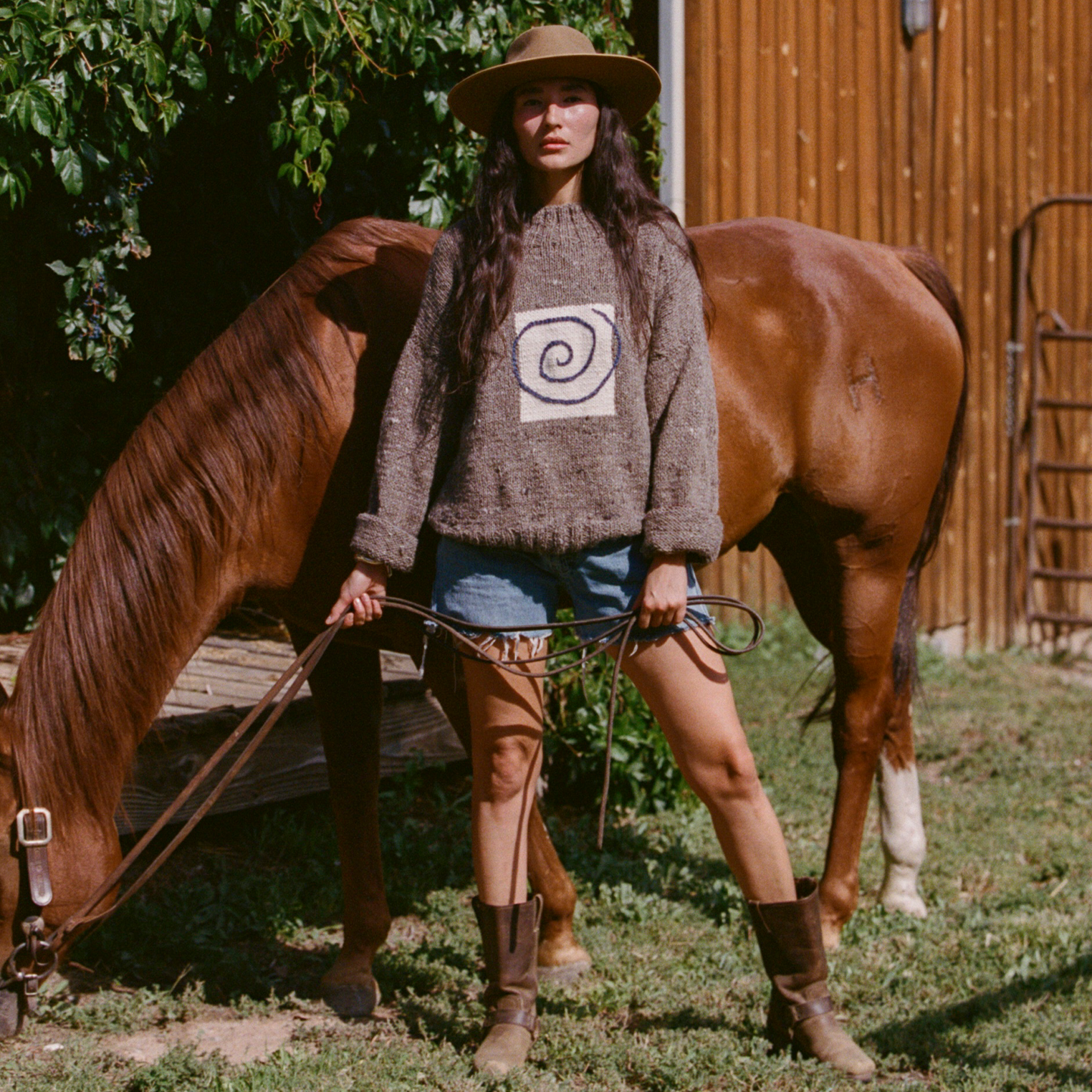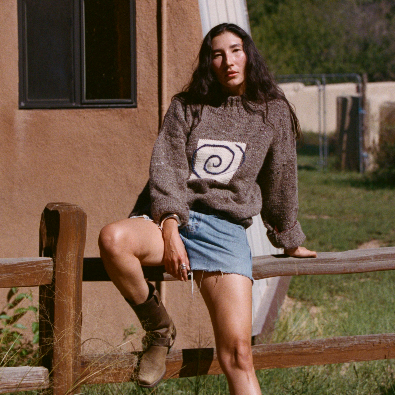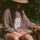 Inspired by the quiet patterns found in nature and the timeless beauty of vintage knits, the Heritage Spiral Sweater is a cozy, everyday statement piece. Hand knit from a soft 100% alpaca and wool blend in warm grays with hints of brown, with a hand-embroidered navy blue spiral, this pullover, fisherman-inspired knit oversized sweater is both cozy and versatile, perfect for layering over your favorite tees or dresses.
