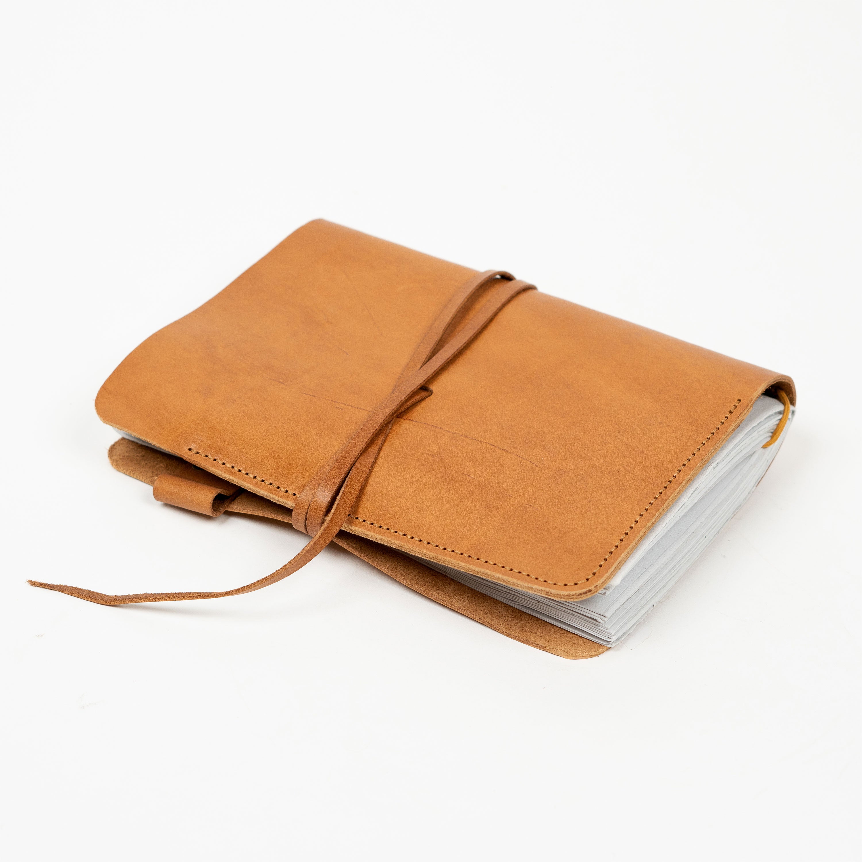 Lots of thought and love goes into making these leather wrapped journal covers. We use Vegetable Tanned Leather to make a one-of-a-kind cover.
