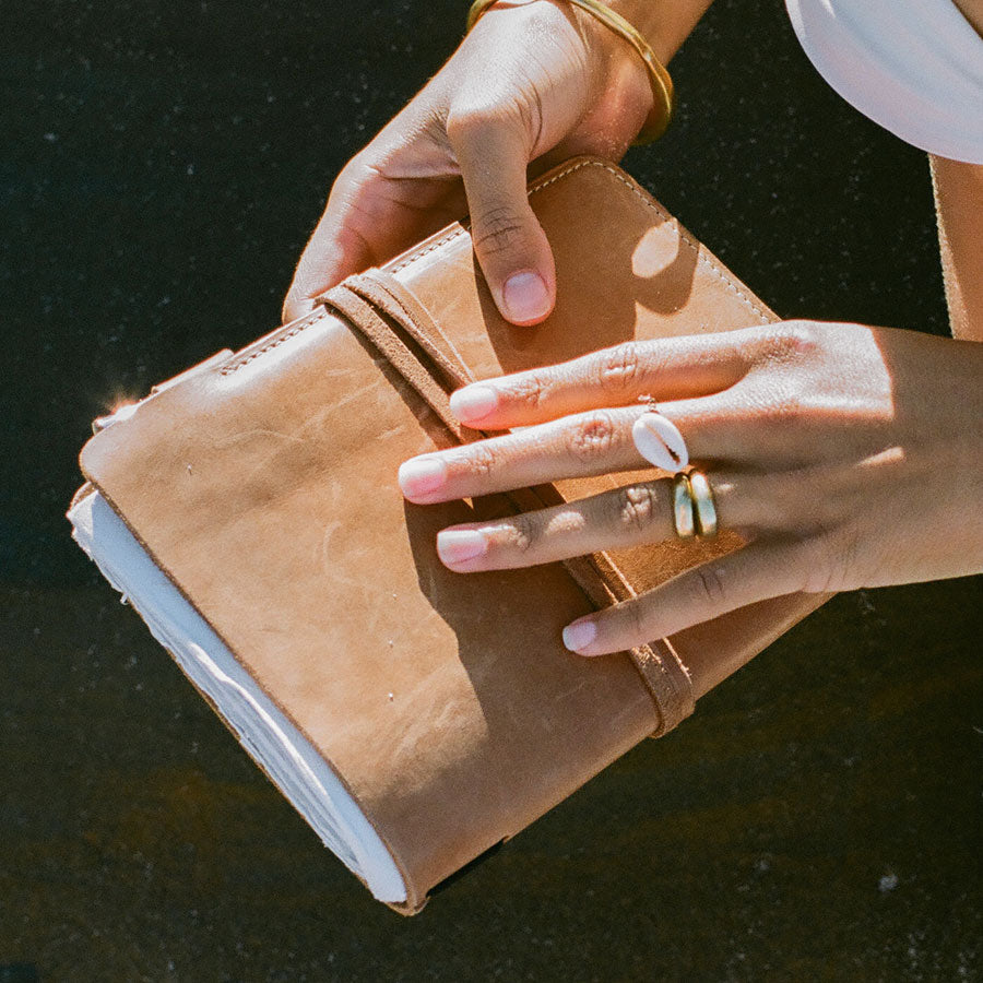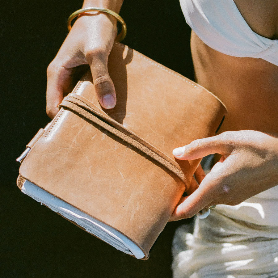 Each and every Minga leather piece is made by hand with high-quality leather that is naturally-dyed and free of chemicals to reveal its unique texture and natural imperfections. The leather will naturally wear over time, picking up oils to soften and beautify.