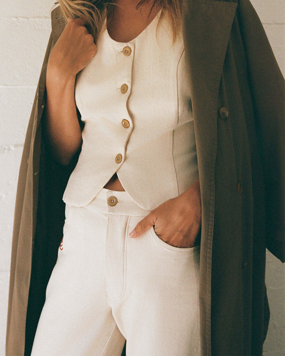 These pants are the result of a series of careful artisanal processes. The cotton fabric is made in a small, family-run workshop, and each garment is cut and sewn by the hands of women.